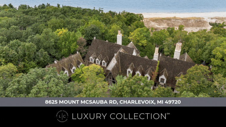 Sandpiper is a work of nature, of pride, of craftsmanship and of artistry that will never be duplicated. The estate abuts the dunes of Lake Michigan with wooded walking paths to Lake Michigan beach, walk miles of sandy shoreline collecting Petoskey stones or beach glass, swim in the wonders of Lake Michigan or enjoy the stunning beach deck with panoramic vista views of shoreline and unspoiled dunes. Enjoy the heated gazebo or sit around the campfire with seating for the whole clan. The Private drive with remote controlled gated entrance ensures the privacy one would appreciate from this ONE OF A KIND ESTATE yet the location to town is minutes away to enjoy all Charlevoix the Beautiful has to offer.